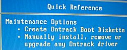 ![]() プログラム起動後の最初の画面です。(A)dvances Optionsを選択します。 最初から(E)asy Disk Installationを選択するとどうなるかは 次回以降に持ち越しです。 |